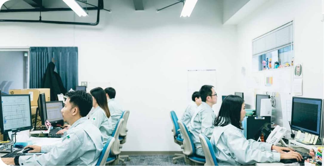検査課完成した製品を、検査基準に基づき品質チェックのほか、品質検査に関する報告書の作成などを行います。