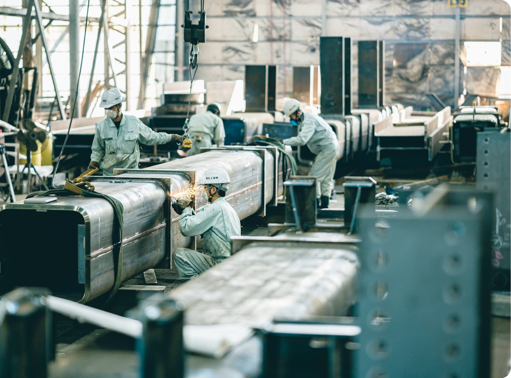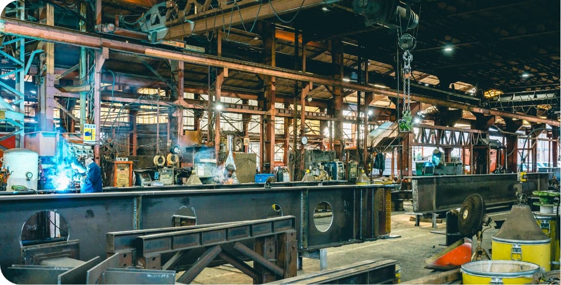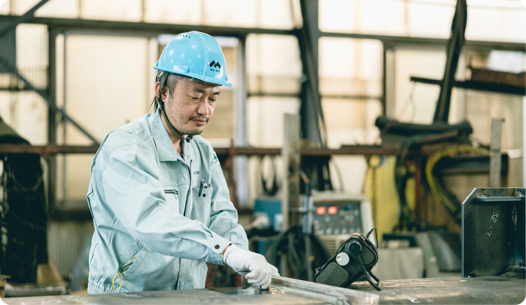 一次加工された様々な鋼材を、柱や梁の形へ組み立てを行います。