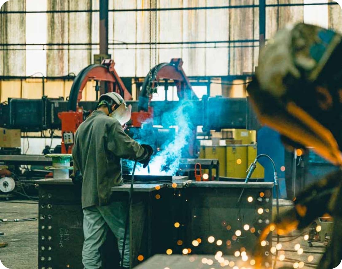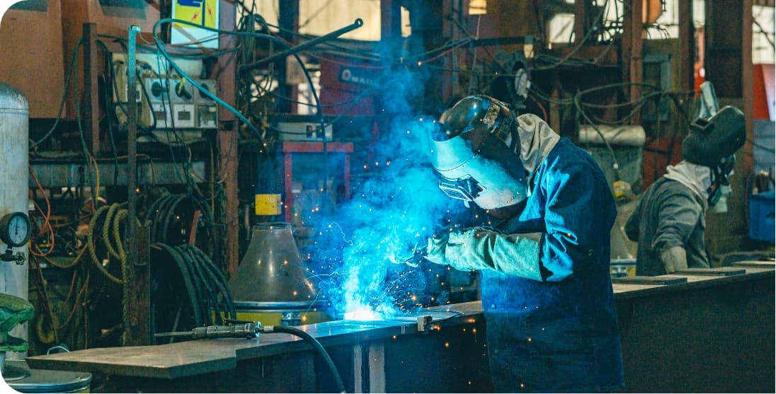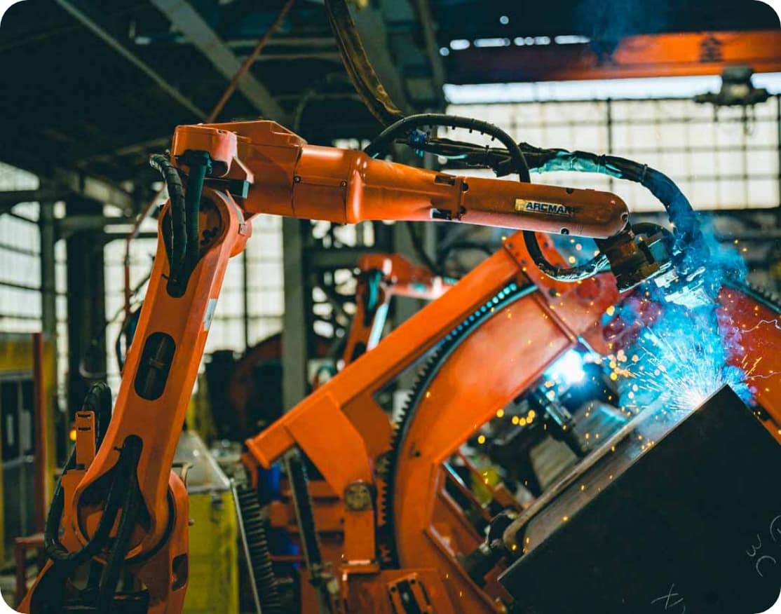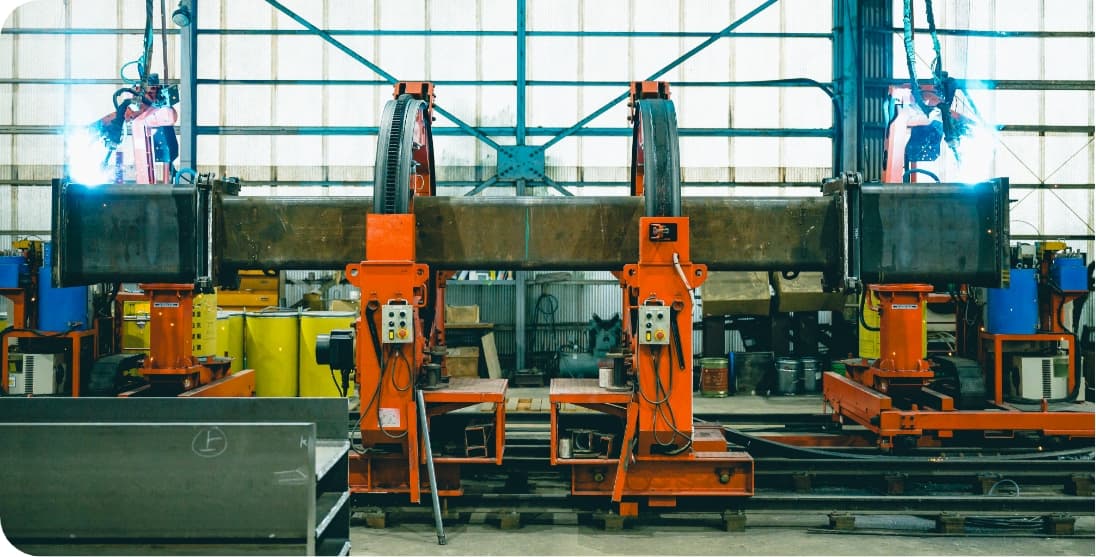 ロボット(機械)により、自動溶接を行います。溶接ロボットにより、安定的な溶接が可能になりました。