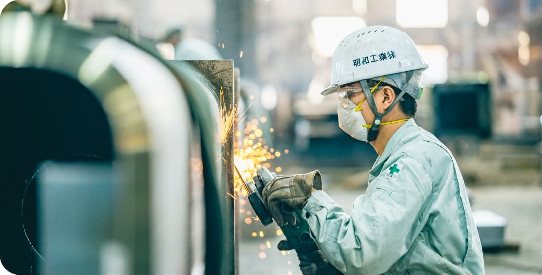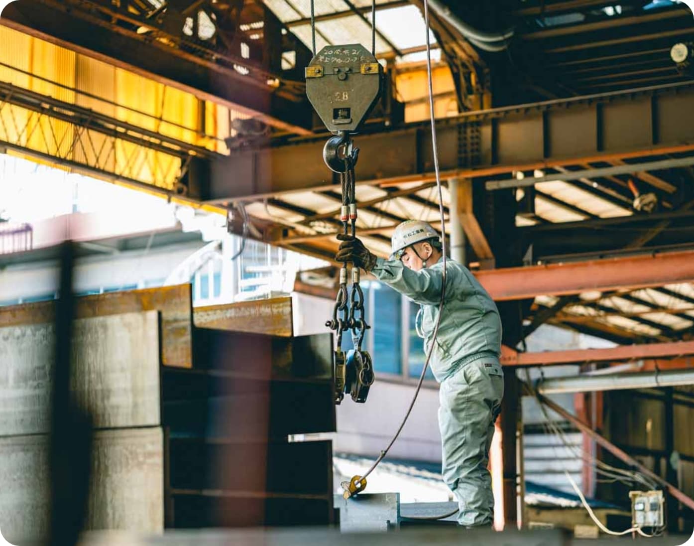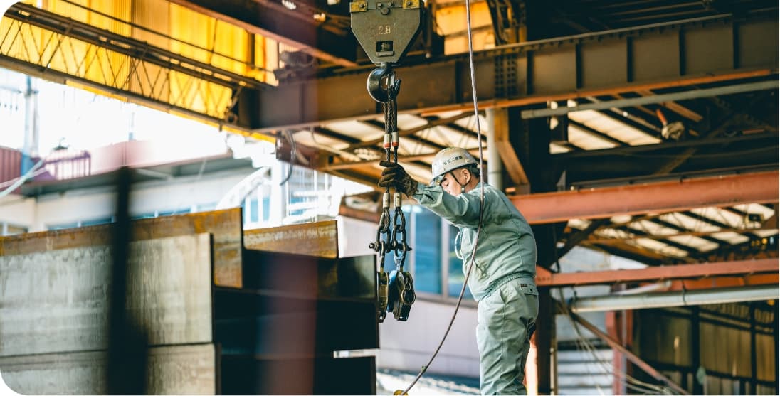 製鉄所から購入した鉄板などの素材を、発注されたサイズに合わせて切り揃えたり、穴を開けたりする一次加工を行います。